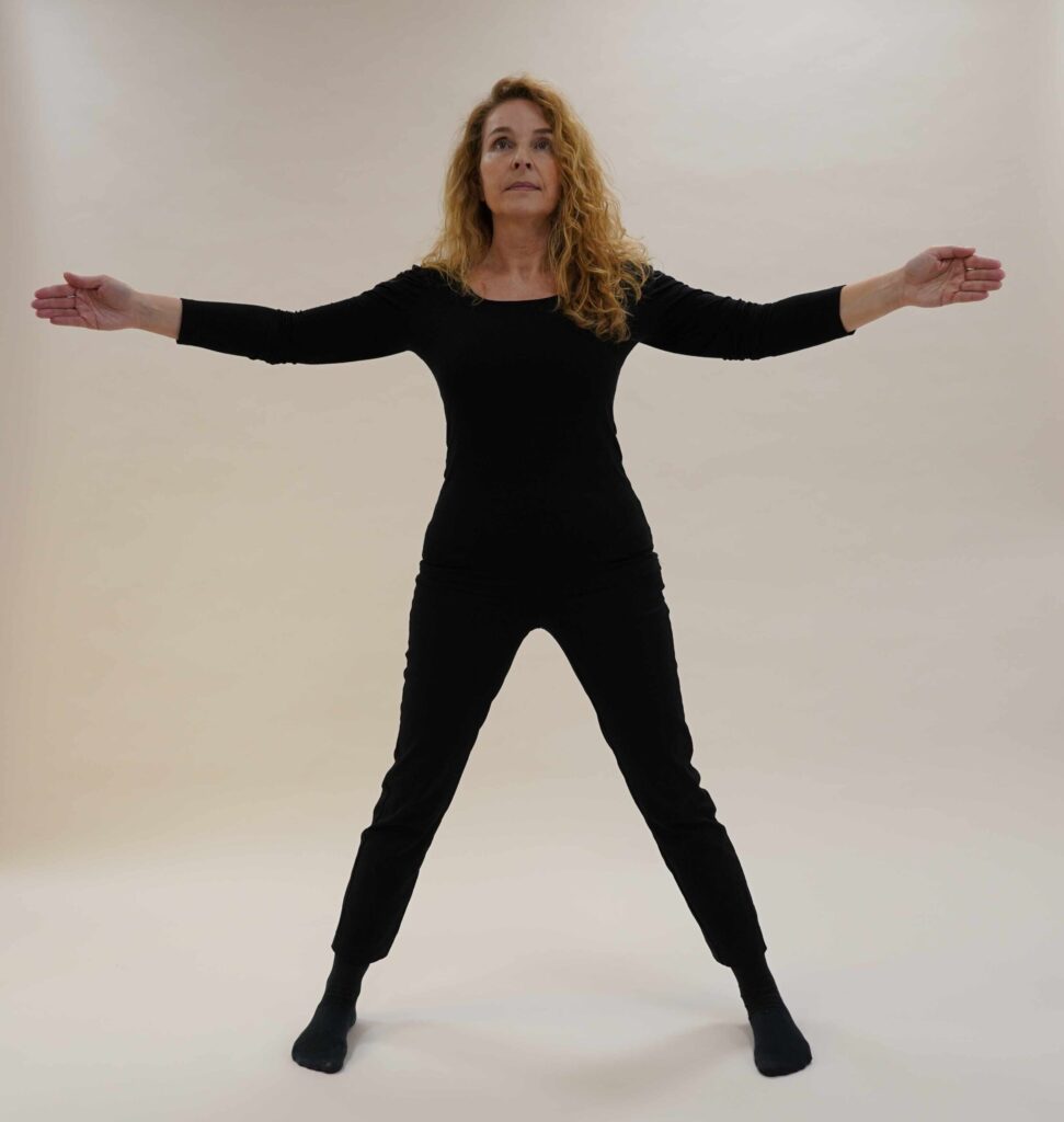 Bleiben Sie so lange in dieser Haltung, wie es angenehm ist – ein paar Minuten oder länger, wenn Sie mögen. Spüren Sie die Weite der Arme, die Standfestigkeit der Beine und die Balance im Körper und: lassen Sie die Energie wirken.